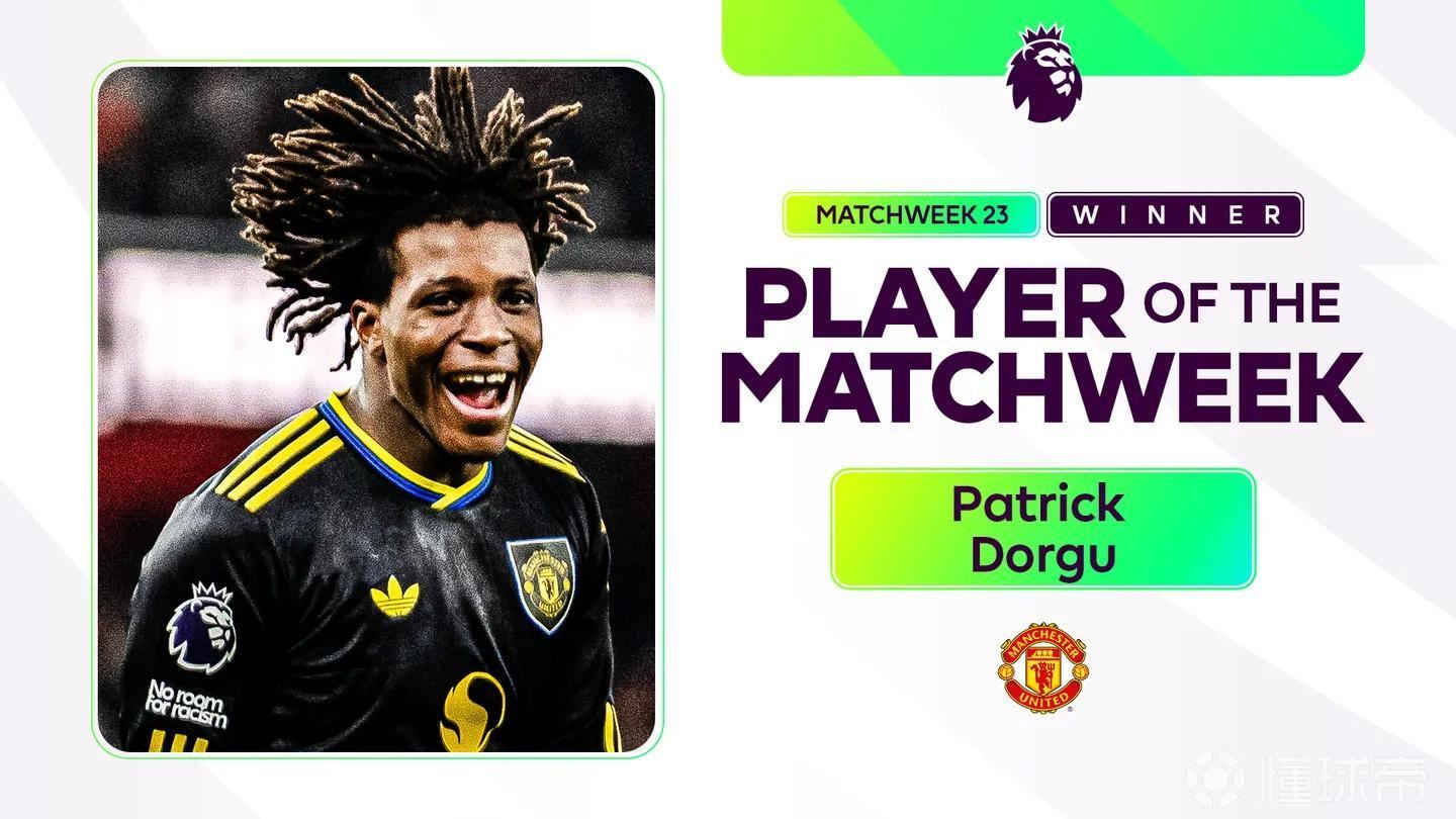 官方消息,曼联球员多古当选英超第23轮最佳球员。